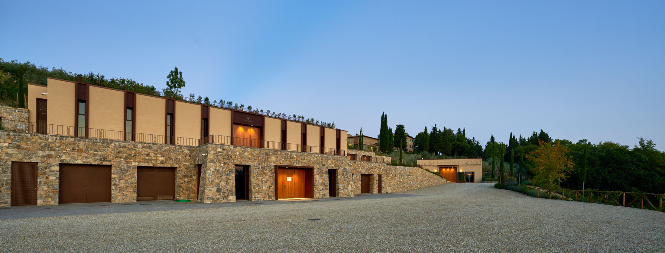 Im Herzen der Conca d’Oro von Panzano in Chianti wird die Kellerei Gagliole mit der Weinlese 2019 Realität, das Ergebnis einer Vision und einer Investition, die Innovation, Präzision und Respekt vor dem Ort miteinander verbinden sollen. Dank ihrer Hanglage und ihrer Fassade aus Pietraforte fügt sich die Kellerei harmonisch in die Landschaft ein und harmoniert mit den umliegenden Weinbergen, ohne sich aufzudrängen.